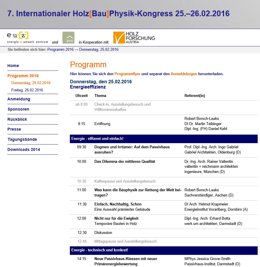 Zum ausführlichen Programm des Holzbauphysik-Kongresses